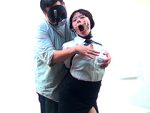 銀色のブラウスに黒のミニスカート姿の「城山若菜」が登場!!口を塞がれ身体をロープで縛られパンツ丸出しの状態にされてしまいます。後半はブラウスのボタンを開けられおっぱいが丸出しに…。