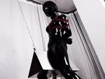 全身エナメルの才女であり真正マゾである・ヨーヨーの両手を後ろに回し、天井からチェーンで吊るしてしまうマスター。この体勢で彼女の身体はより光沢感を増して見える。四肢を固定されたヨーヨーは、不自然な体勢の ...